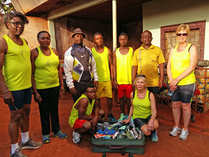 Samen met de coaches, een aantal scholieren en een familielid hebben we, als try-out op een avond een parcours gerend. Prachtig was dat. Mensen hadden waarschijnlijk nog nooit van die witte benen zo snel zien rennen. Wilma Running Hardloopadviescentrum had voor de Kameroense deelnemers zo'n 25 hardloopschoenen en een aantal sportsinglets met het logo van Stichting Mewa'a gesponsord, als extra stimulans om serieus met running aan de slag te gaan. We zijn ontzettend benieuwd of de hardloopclub uit Mbouda doorzet. We onderhouden contact via de app. En er is al één foto binnen van een deelneemster die met het singlet en de schoenen van Wilma Running aan het lopen is.